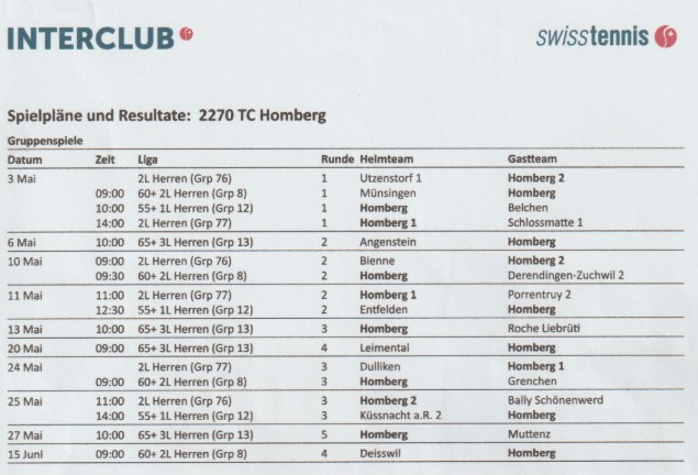 Die Interclub-Saison 2024 findet planmässig statt. Nähere Informationen findet Ihr auf www.swisstennis.ch oder per Mail an interclub@swisstennis.ch